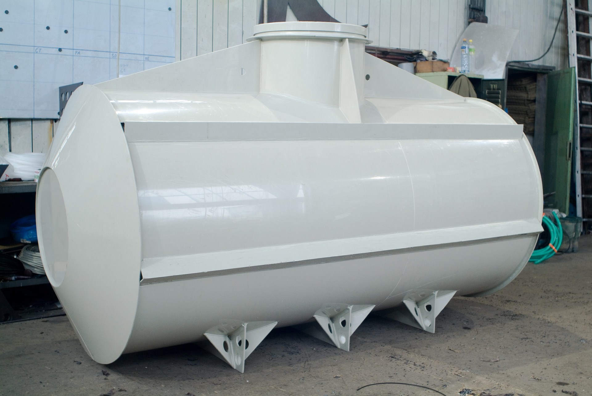 Sklolaminátová nádrž bez ukotvení | Třetím důležitým bodem je samotné uložení nadrží pod terénem. |